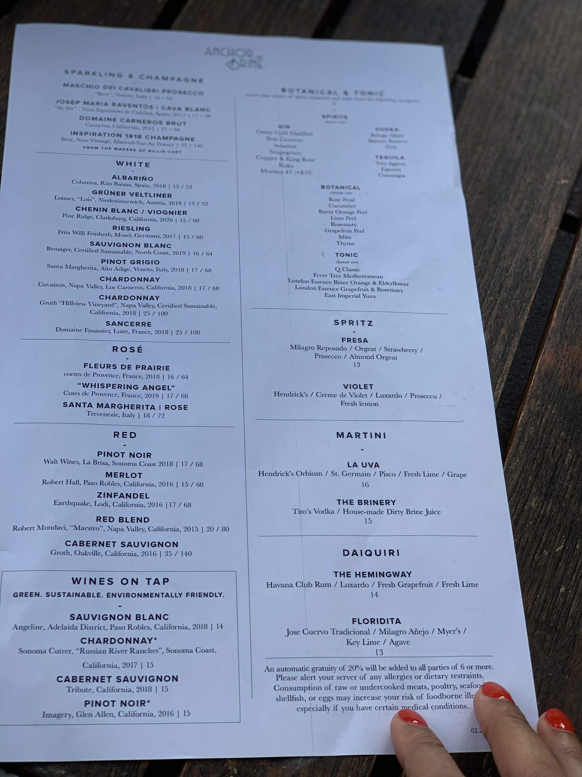 Service: The service was fantastic, we were running late, made a call, and they still held our dining table for us. We were greeted by the host, who seated us right away. I recommend making reservations, especially if you want the dining on the dock area close to the water. Our server guided us through the menu, and he did not disappoint. I could see myself going back here just to hang out either with hubby, a friend, or a group of friends. Overall, the service was stupendous.