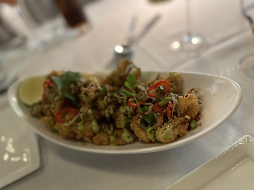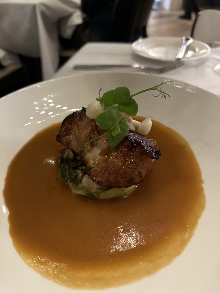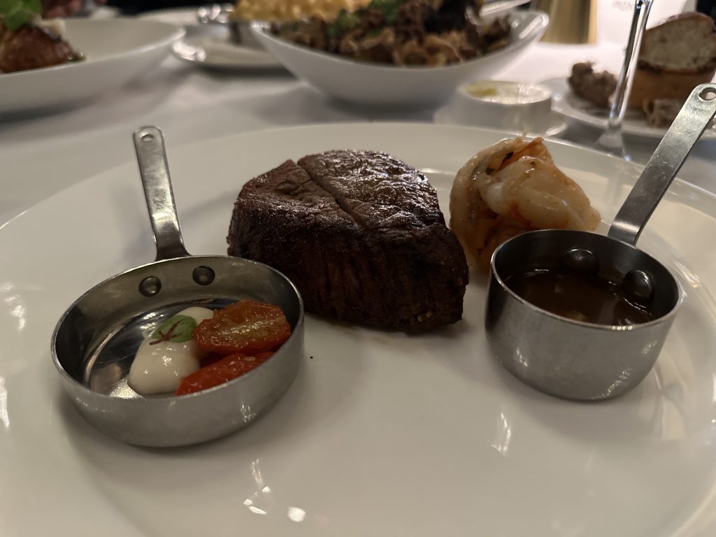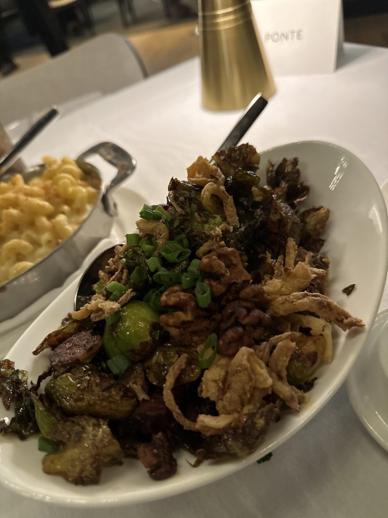Food: The food was just as delicious. We started with the calamari (spicy-sesame honey, bean sprouts, peanuts, scallions, and cilantro. My filet mignon- Linz Heritage Angus topped off with the cognac truffle sauce and topped with tiger shrimp for our main course. The steak melted in my mouth. Yummy! My hubby had the Chilean sea bass- miso, bok choy, pickled beech mushroom and lobster ginger sauce, his meal was just as tasty! We had the campanelle gouda mac and cheese for our sides, which I wish included more gouda cheese flavors. I could not taste it. Finally, we had the carrot cake for our dessert, which was quite unique. Let’s just say it was Ponte’s version of a cheesecake.